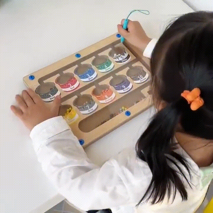 Paverskite mokymąsi nuotykiu su magnetiniu spalvų labirintu! Šis Montessori įkvėptas žaislas supažindina vaikus su spalvomis, skaičiais ir skaičiavimu, tuo pačiu išlaikydamas žaidimo įdomumą. Tai puikus pusiausvyros tarp pramogų ir ugdymo sprendimas ikimokyklinio amžiaus vaikams.